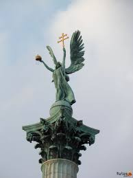 Gábriel a Hősök terén. Reméljük, visszajön. Legalább egy magyarázó angyal adassék, aki elmondja a jóistenező ország-vezetőknek, mi lenne a keresztyénség (Jób 33,23)…